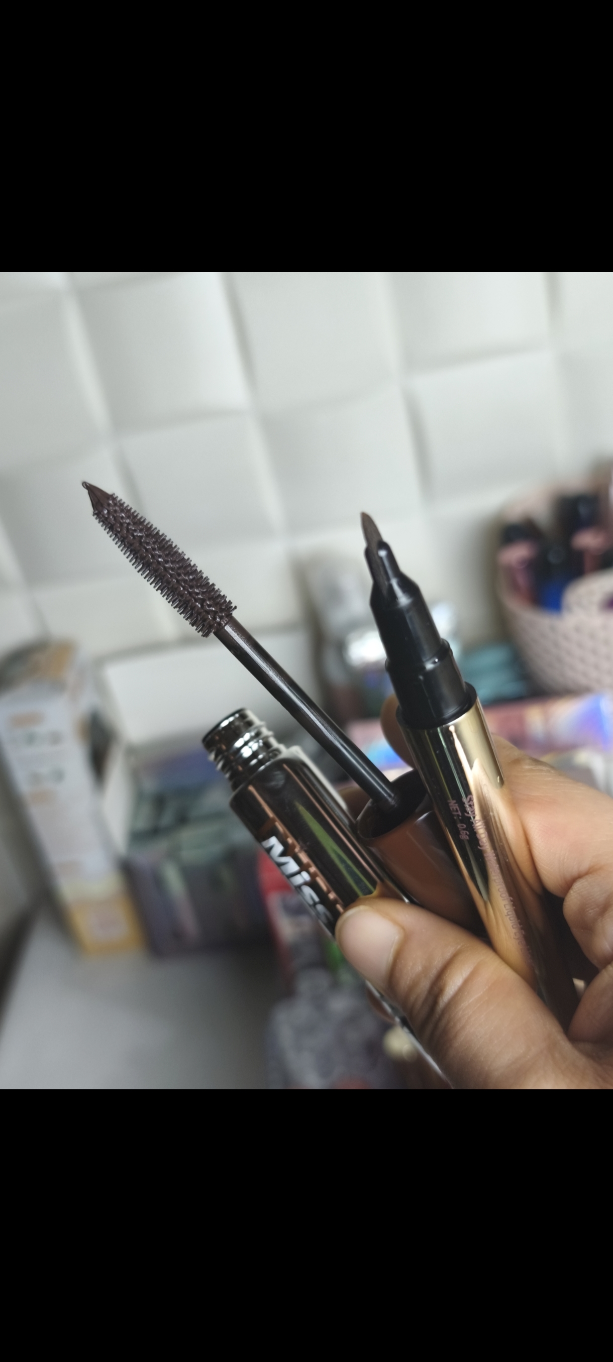 ست ریمل رنگی و خط چشم رنگی آبی و قهوه ای